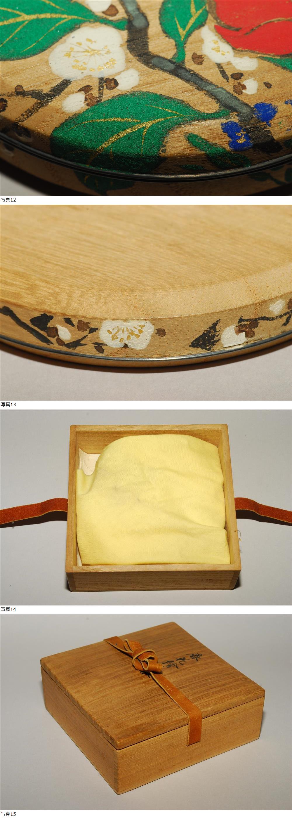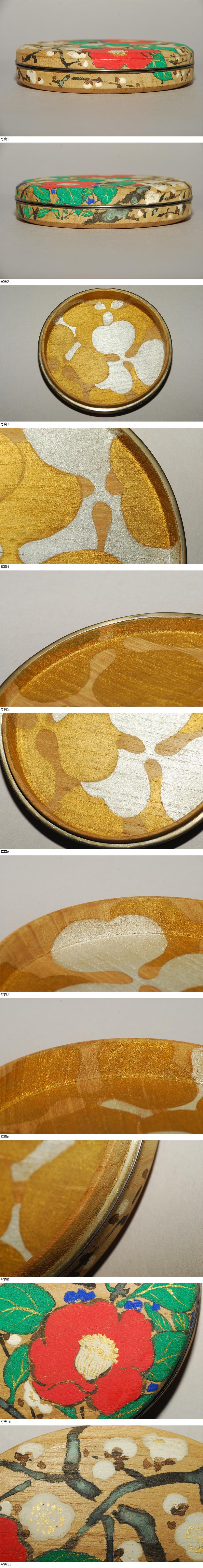 木製色絵 晴山 造 春花絵香合 共箱 茶道具 桐 銀縁 收藏