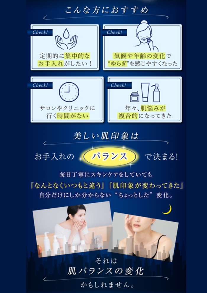 | 商品説明 | ・・MARI LANの美容理論が詰まった、至福のシートマスク。 ・「保湿」×「摩擦レス」を叶えるシートマスクは、肌に優しく、しっとりとしたうるおい感を与えます。 ・厳選した美容成分が配合され、心地よい使用感と共に、日常のお手入れに特別感をプラス。肌にフィットするシートは、サロン帰りのようなリラックスした時間を演出します。 ・また、旭化成が生産する高品質なキュプラ長繊維不織ベンリーゼを使用し、肌への優しさと安心感を追求。個包装タイプで、衛生的にお使いいただけます。 ・このシートマスクは、日々のスキンケアの一環として、肌のうるおい感を高め、なめらかな肌触りをサポートします。 |