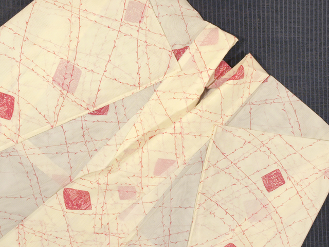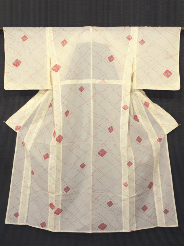 【夏着物】 柳襷に色紙文 絽 洗える着物 小紋 単衣 しつけ付 丈152 TAOG01003風楽 |