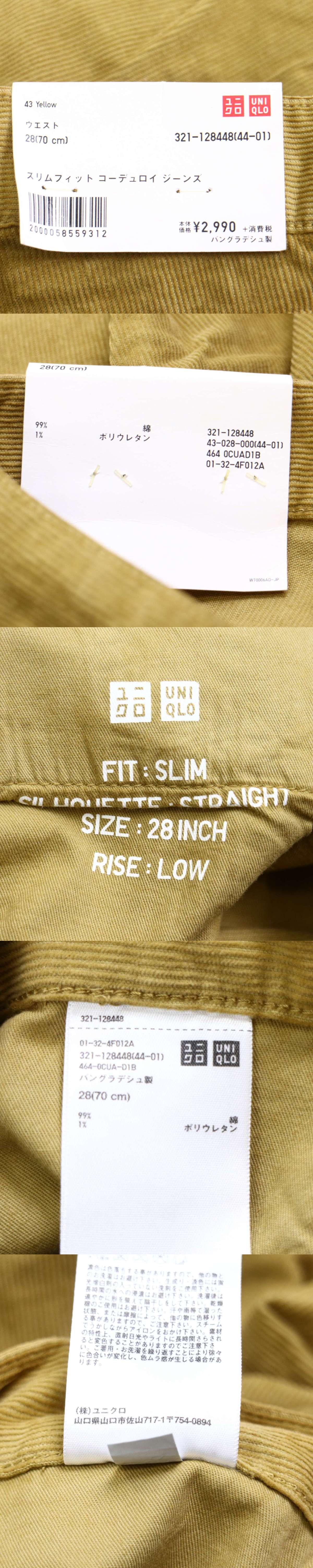 【新品 未使用】 UNIQLO ユニクロ 秋冬 ストレッチ★ スリムフィット コーデュロイ パンツ ジーンズ Sz.28 メンズ イエロー 收藏