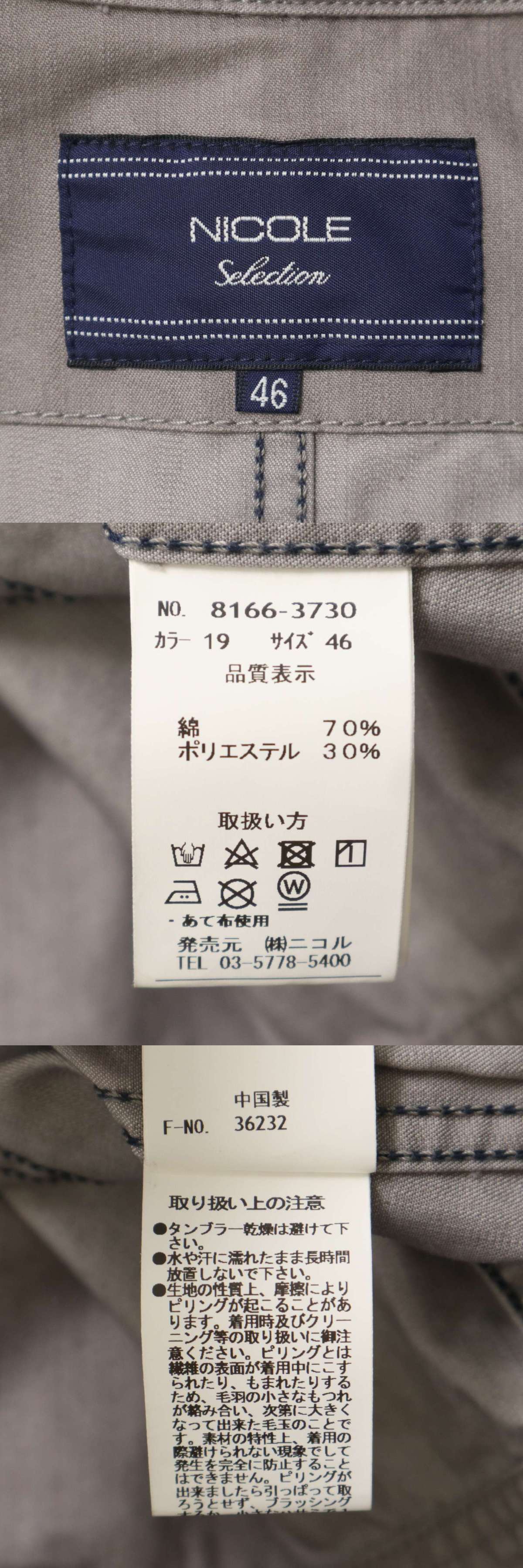 NICOLE Selection ニコル セレクション 通年★ スリム カラー トラッカー ジャケット Sz.46 メンズ グレー 收藏