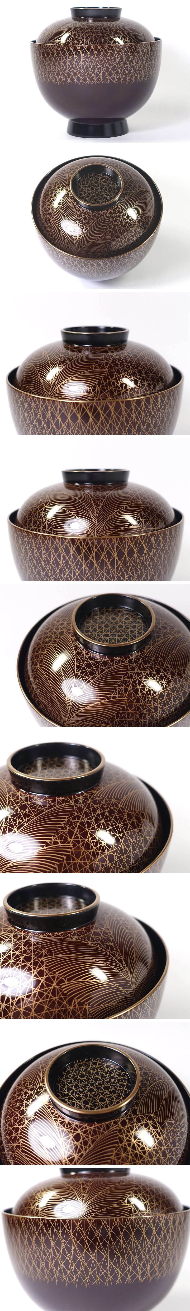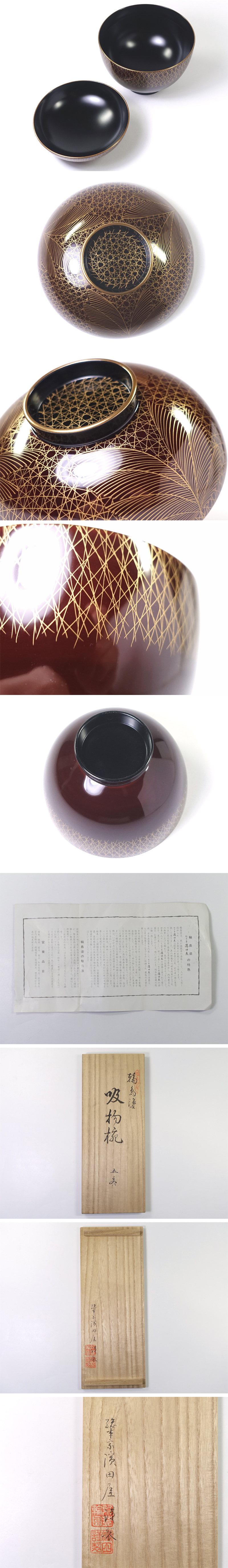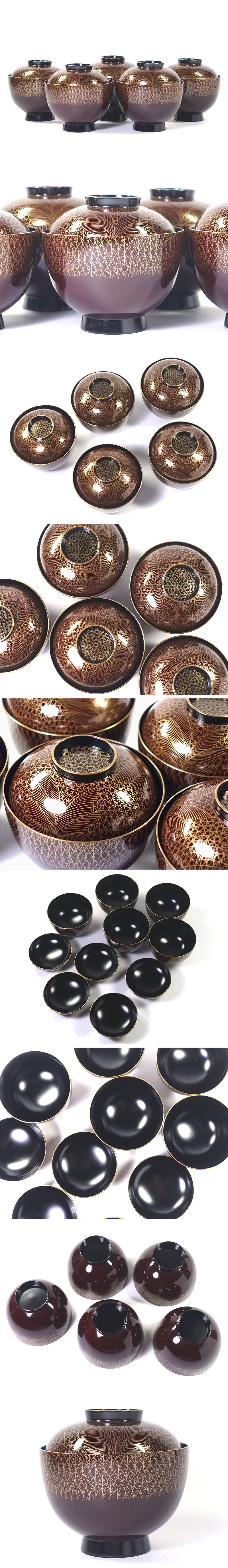 ∇花∇創業四百年【濱田屋漆器店】謹製 最高峰輪島塗 細密地紋蒔絵吸物椀五客 共箱付 天然木に漆塗 圧巻の作域示す逸品 收藏