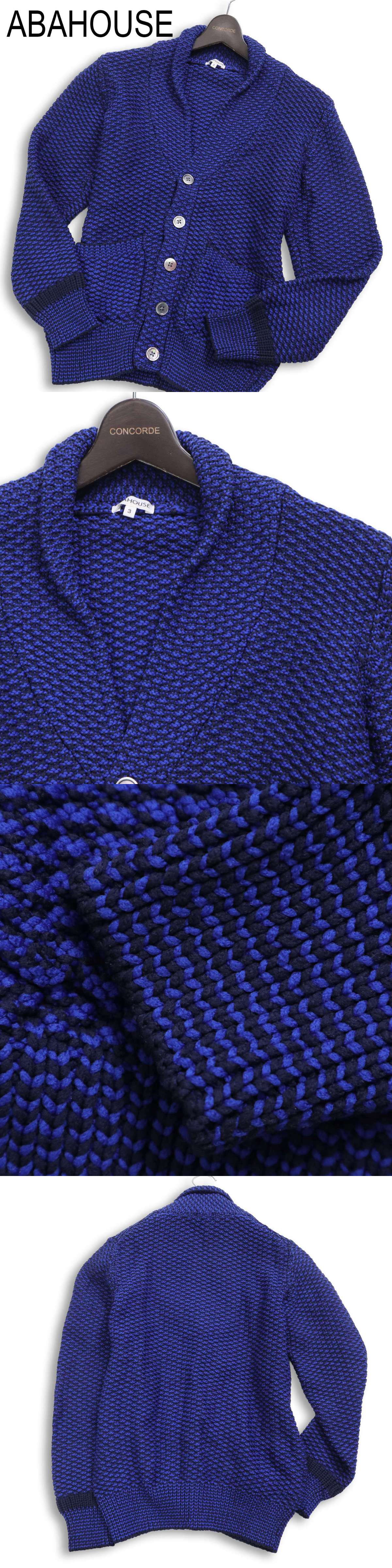 美品★ ABAHOUSE アバハウス 秋冬 ショールカラー ニット カーディガン Sz.3 メンズ ネイビー 收藏