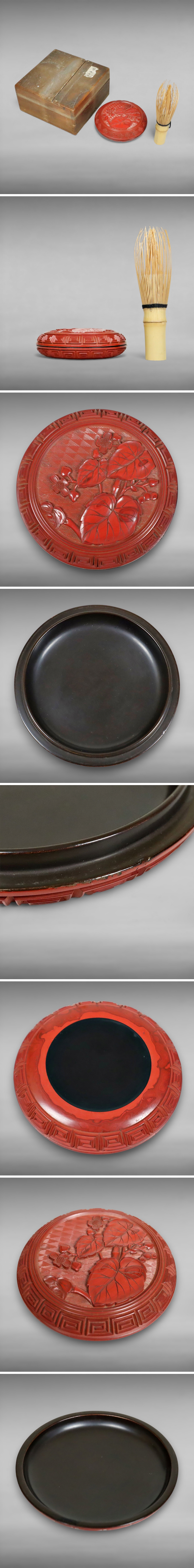 幕末~明治期 堆朱 香合 内黒木地 地紋 細密彫刻 漆芸 茶道具 古美術 骨董品 漆器 0363vgyN 收藏
