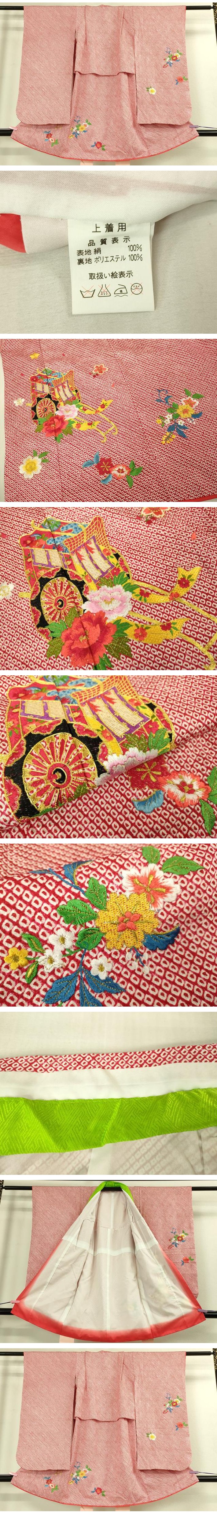 平和屋本店[]極上 七五三 女の子 3歳 祝着 三つ身 総絞り 刺繍 御所車花文 金糸 逸品 DZAB3204kh6 收藏