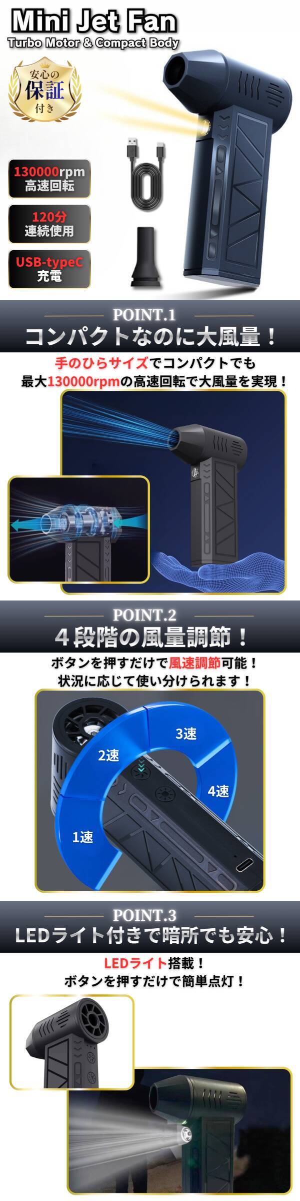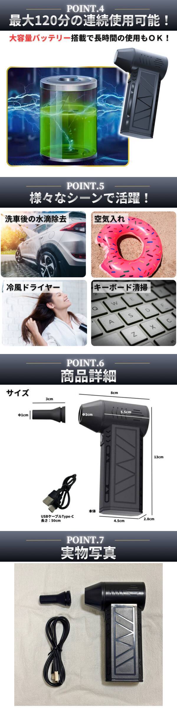 エアダスター 電動 ターボブロワー 大風量 4段階 風速 調節 強力 充電式 空気入れ キーボード 掃除 車内 送風機 ハイパワー コンパクト 收藏