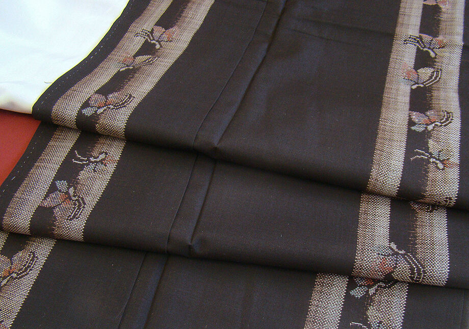 | 商品説明 | こちらのお品は「袷」でございますので、10月~5月までお召頂ければと思います。 大島特有の大変にさらりとした生地は裾さばきが良く、程よい独特のハリやシャリ感に満ち 着心地が良いため、現代のお洒落着として大変人気がございます。 シャリ感のある肌触りと心地よい絹なりが、洒落心をくすぐる純泥染の本場奄美大島紬です。 渋い黒茶色地にラインに蝶々?の織柄が極め細やかな径横絣七マルキで織り成されております。 八掛は葡萄茶色(正絹)、証紙・残布なし、幅広い年代の方にお召頂けます。 |