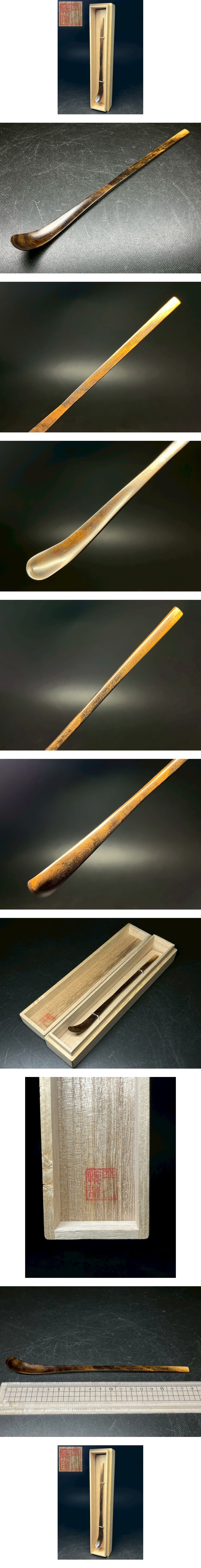 【名工】平山悦雄 作 黒柿 茶杓 共箱 銘入 茶道具 漆芸 希少材 茶道具 極上品 日本伝統工芸 人間国宝 骨董 コレクター放出 匠の逸品 收藏