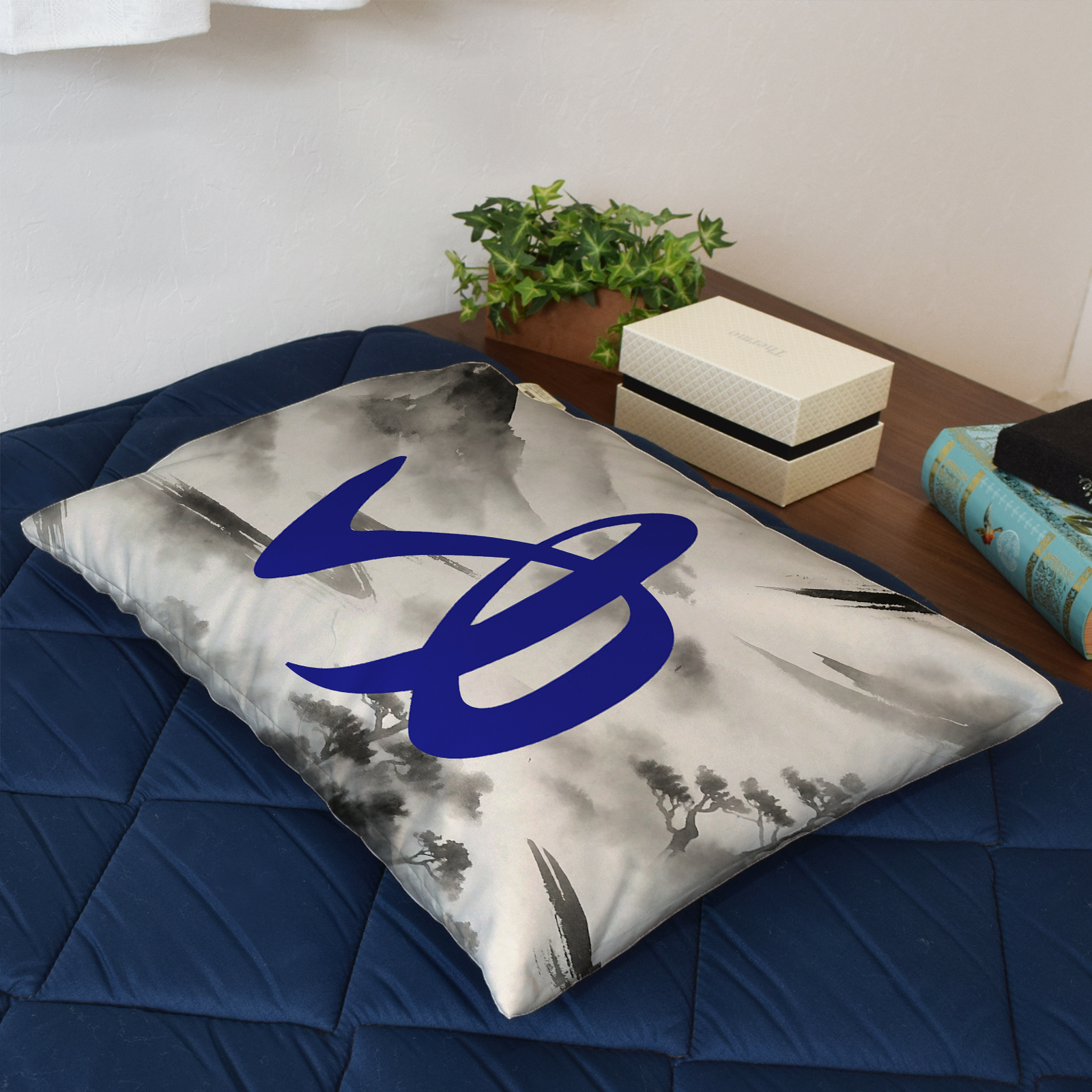 枕カバー 約35×50cm カバーのみ おしゃれ まくら カバー 洗える 寝具 クッション 転写プリント 温泉 風呂 CSC-C170 水墨画1 ゆ ブルー 收藏