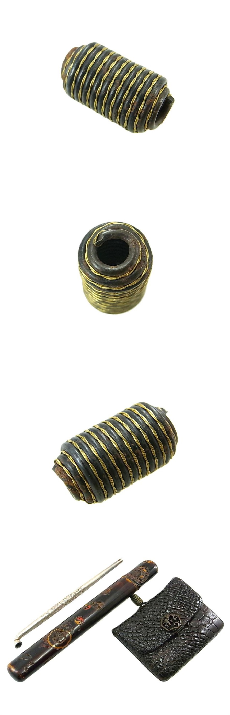 三種在銘作一式 一親作・彫彩漆筒 勝正作・純銀煙管 此君作・鰐革煙草入れ 02/22 (日)終了 收藏
