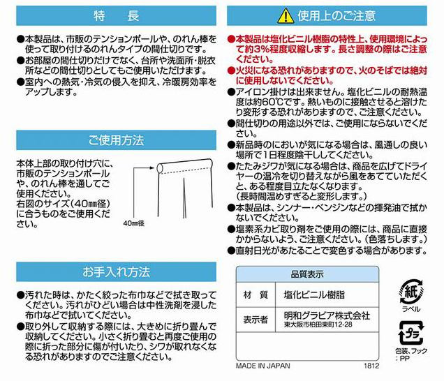 間仕切りのれん 90×250cm GY LMP-02 收藏