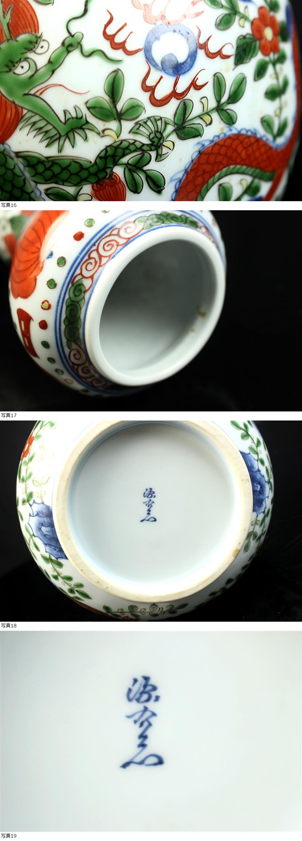 【董芸】名門 館林 源右衛門 作 有田焼 染錦 倣萬暦赤絵 花瓶 高47.5㎝ 真作保証 [363139] 收藏