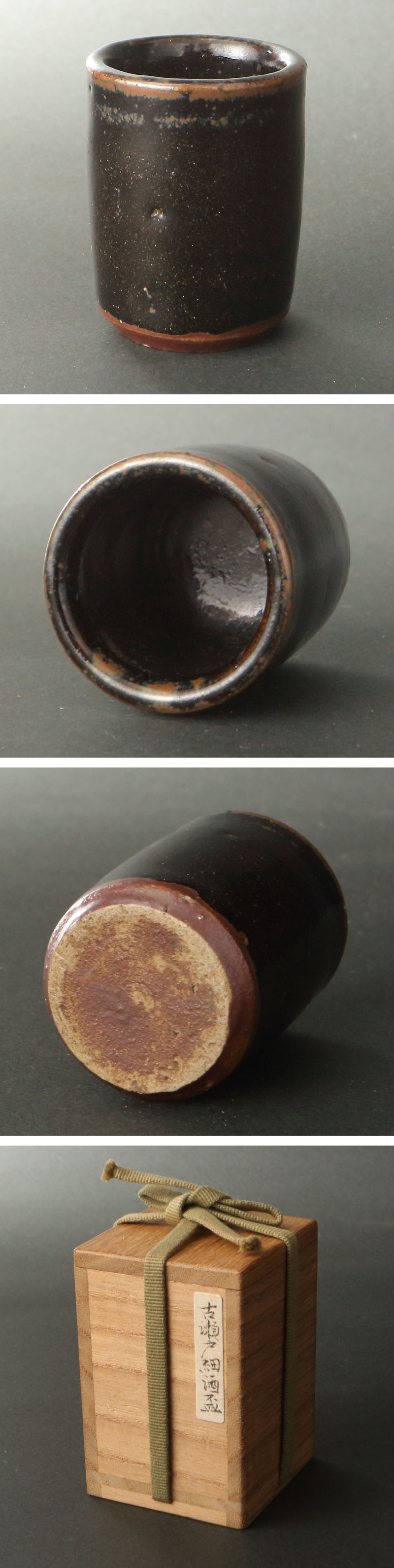 委託HK◇時代 古瀬戸細酒呑(茶道具 陶磁器 陶芸 瀬戸焼 黒 酒器 ぐい呑み お猪口 盃 酒次 徳利 日本酒 筒型 懐石 食器 古物 骨董 ) 收藏