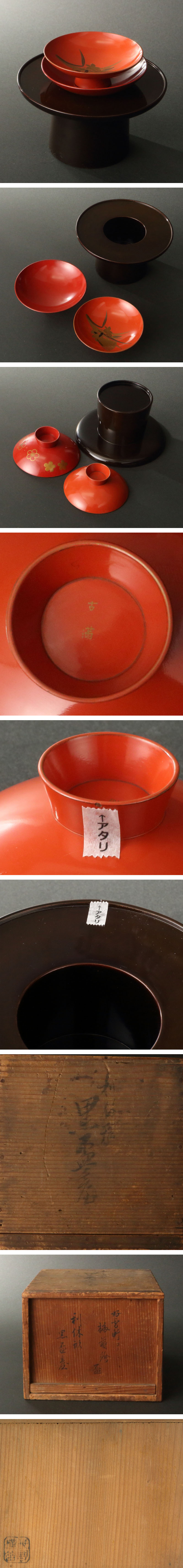 委託HK◇長野横笛 朱盃・盃台 共箱 古満寛哉補作(茶道具 金蒔絵 漆芸 漆器 酒器 酒杯 酒盃 朱杯 朱塗 茶事 茶席) 收藏