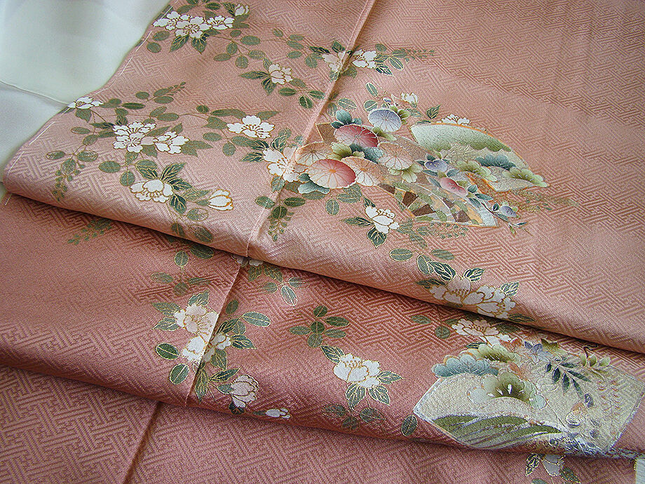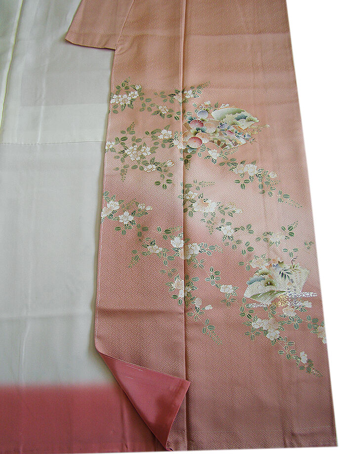| 商品説明 | こちらのお品は「袷」ですので10月から5月までお召頂ければと思います。 とてもしなやかで柔らかな手触りの着心地良い重厚感ある紋意匠地の生地、 落ち着きある退紅色地に裾にかけて濃色ぼかしに地模様入りに花草、地紙文の染柄に金彩加工、 八掛は紅梅色(正絹)、幅広い年代の方にお召頂けます。 ※モデルさんの帯・小物はイメージ画像で販売は着物単品のみになります。 |