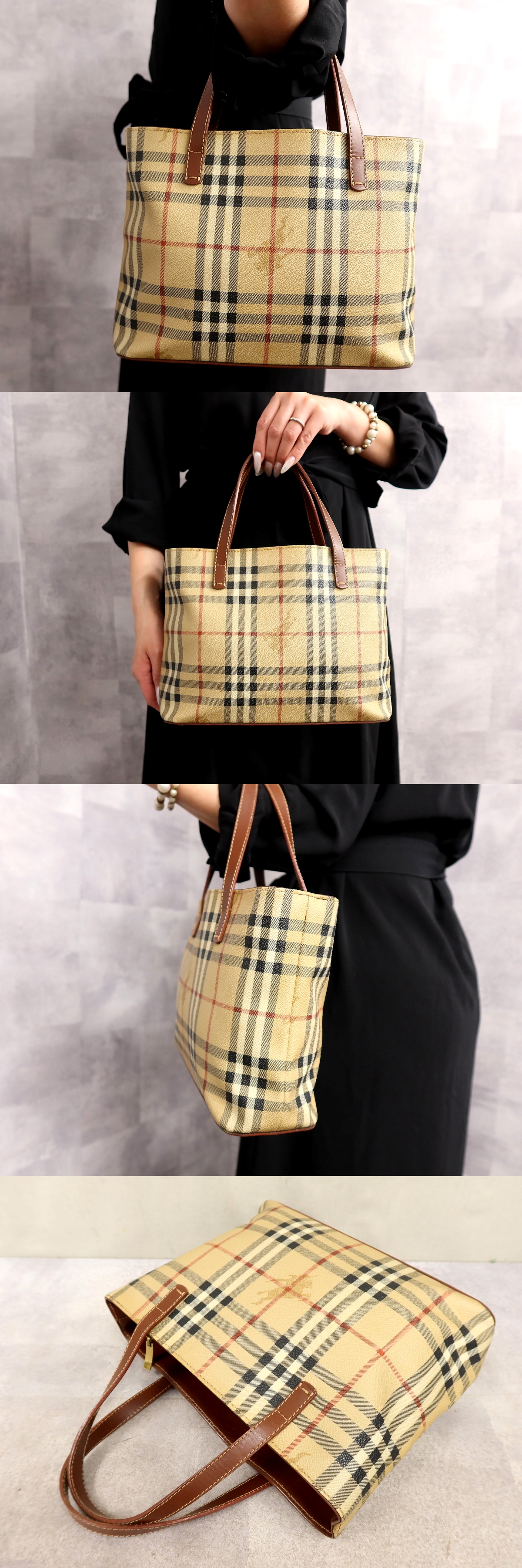 ●超美品●BURBERRY バーバリー●ノバチェック●PVC カーフ レザー 本革●ハンド バッグ●ベージュ ブラウン●ゴールド金具●Js67073 收藏