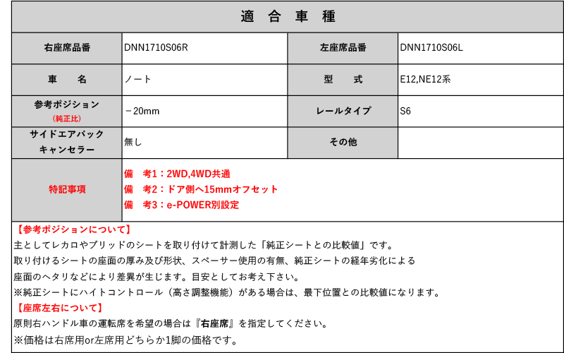 [レカロ RS-G/TS-G/SP-G]E12,NE12系 ノート用シートレール(6ポジション)[N SPORT製][保安基準適合] 收藏