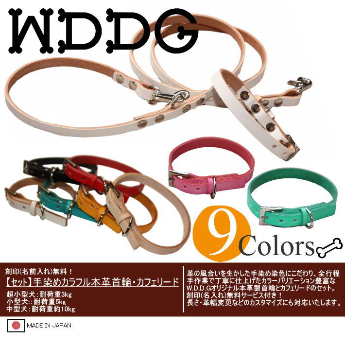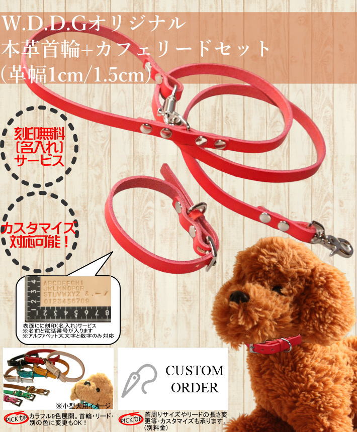 犬 革 首輪 リードセット 名前入り 本革 カラフル カフェリード リード 首輪セット 超小型 ~ 小型犬 犬首輪 迷子札 日本製/ 收藏