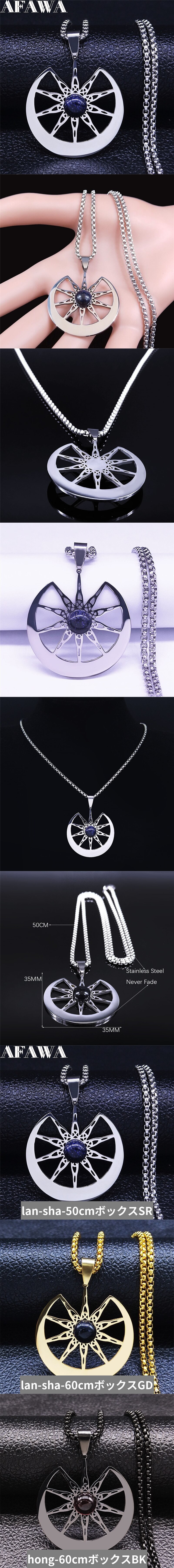ネックレス ステンレス シルバー ストーン インド 月 星 レディース メンズ 女性 男性 魔術 ウィッチクラフト 10 ポイント スター 收藏