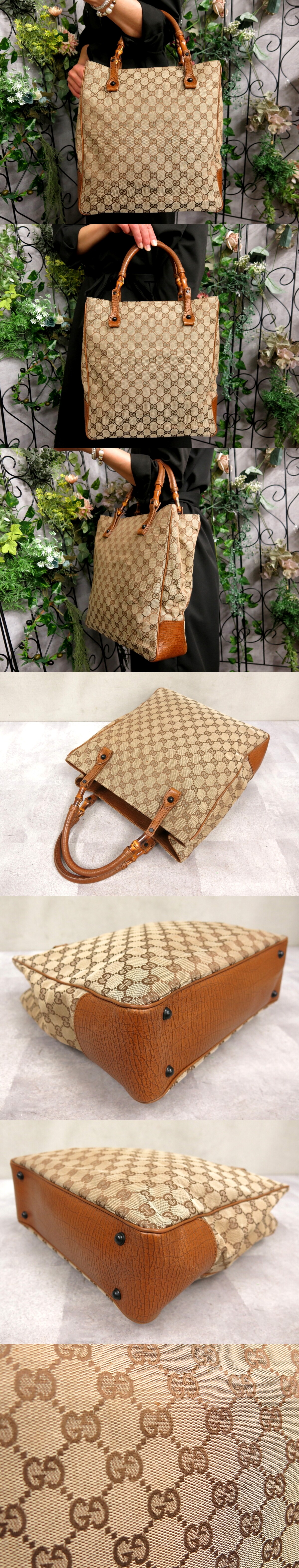 ●超美品●GUCCI グッチ●バンブー●GGキャンバス カーフ レザー 本革●ハンド バッグ●ブラウン ベージュ●イタリア製●B5 収納●Js56787 收藏