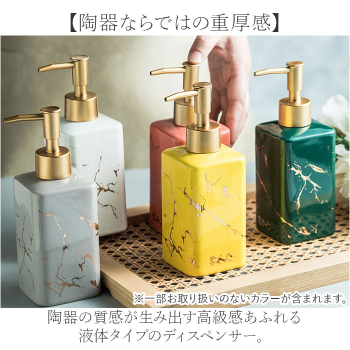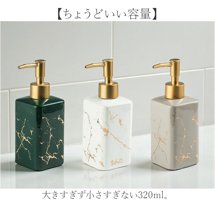 | 商品説明 | ・・【陶器ならではの重厚感】 ・陶器の質感が生み出す高級感あふれる液体タイプのディスペンサー。 ・【おしゃれなゴールドマーブル模様】 ・洗面所やキッチンをワンランク上の空間に格上げするデザイン♪ ・【ちょうどいい容量】 ・大きすぎず小さすぎない320ml。 ・【スマートなサイズ感】 ・場所を取らないコンパクト設計で、すっきり置ける実用性〇 ・【3色から選べるカラー展開】 ・インテリアに合わせて選べる、洗面台や台所を彩る豊富なカラーバリエーション! |
