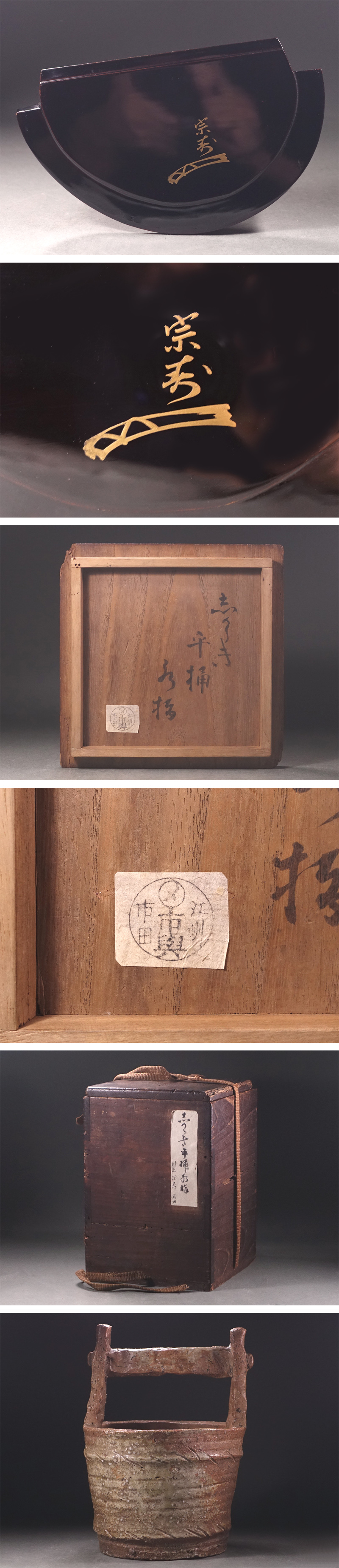 ∇花∇有馬家茶頭・川上宗寿(眉山)在判 江戸時代前~中期頃 古信楽手桶水指 江州名家旧蔵箱入 收藏