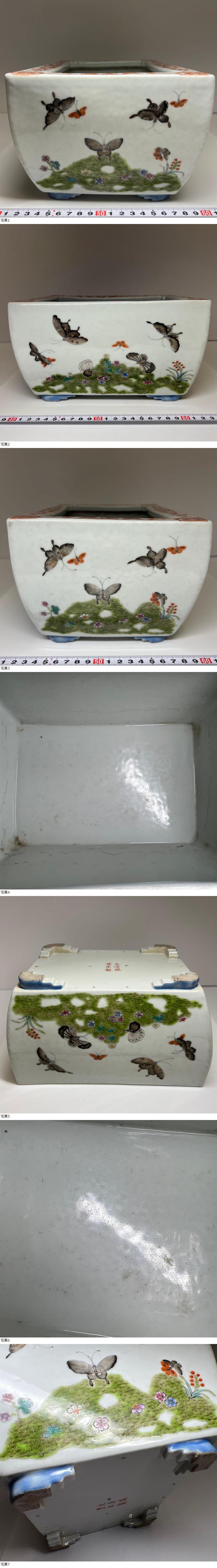 | 中国清時代 大清咸豊年製 粉彩花蝶図鉢 幅約24㎝ |