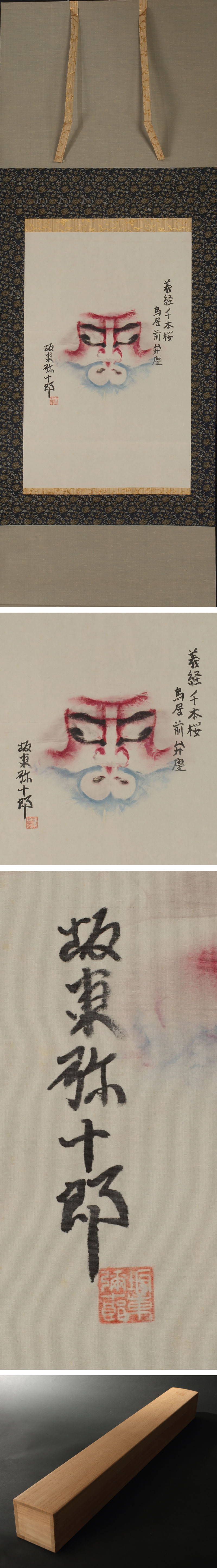 【深和】坂東弥十郎 押隈軸装『義経千本桜 鳥居前弁慶』 真筆(歌舞伎俳優 梨園 大和屋 武蔵坊弁慶 鳥居隈 隈取 文化人) 收藏