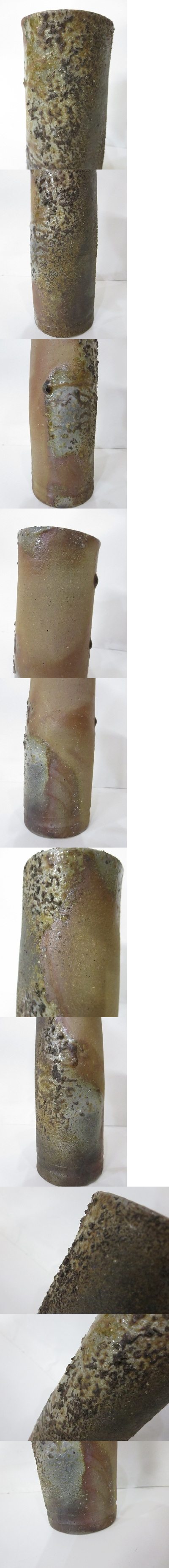 備前焼 藤原雄作 花生 花入 花瓶 花器 筒状 インテリア コレクション 藤原雄 人間国宝 国指定重要無形文化財保持者 /中古品 SG P12.0 收藏