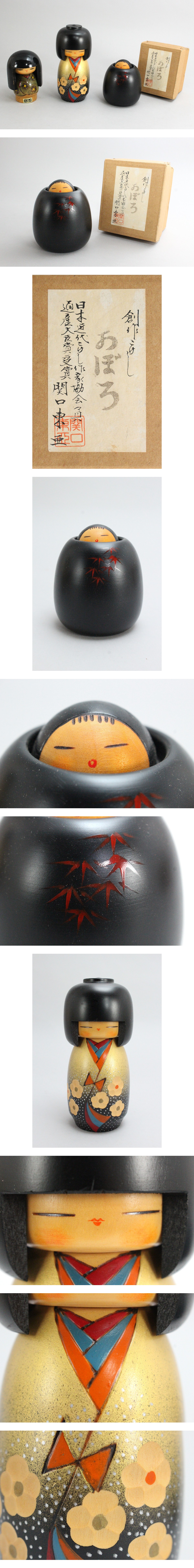 [173980]創作こけし 3点〈関口東亜「おぼろ」高さ10cm 紙箱付〉他◆内閣総理大臣賞受賞作家/近代こけし/郷土玩具/民芸/人形/置物/うぶ品 收藏