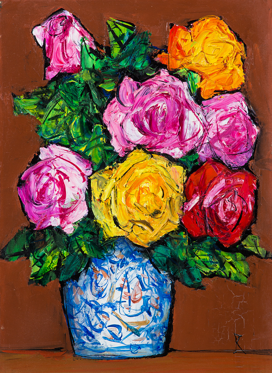 【1on1】真作 中川力 『ばら』 油彩 キャンバス 4号 額装 / 物故巨匠 元一水会会員 師:有島生馬 收藏
