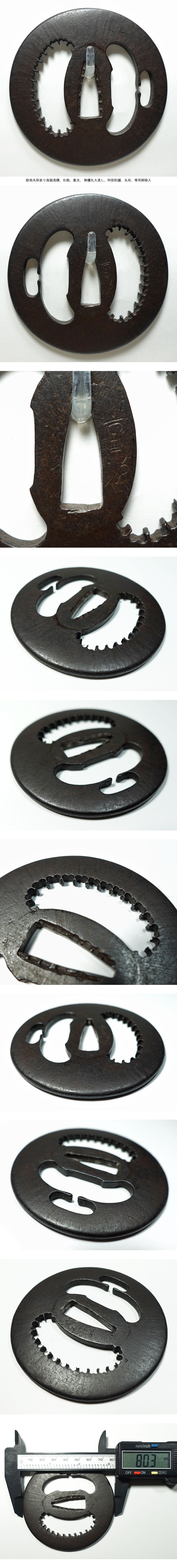 ★肥後鐔? 在銘 重次 鉄地丸形変り海鼠透鐔 無櫃孔大透し 阿弥陀鑢 丸耳 鍛え鐔 鉄鍔 刀装具 拵 外装 専用桐箱入 【鐔65】 收藏