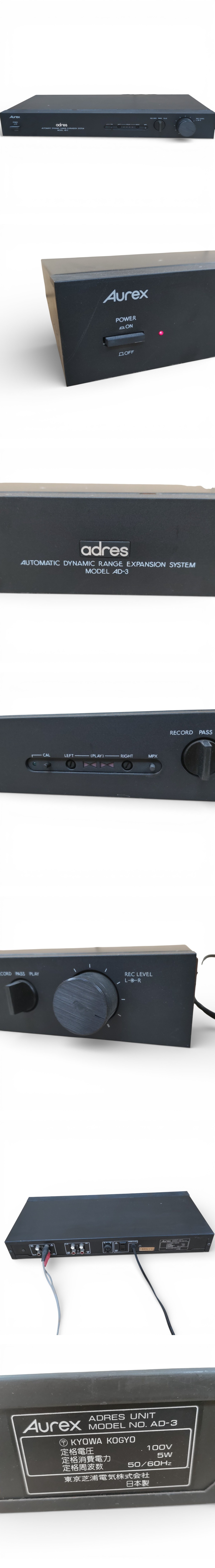 | ※必ず最後までお読みください。 Please be sure to read to the end. 一定要到最后※ | 商品概要 | -95数あるオークションの中からこちらの商品をご覧頂きまして誠にありがとうございます! ※商品説明と注意事項を必ず全てお読み頂いた後にご入札下さい※ 引き続き 安心できる気持ちの良いお取引を心掛けてまいりますのでどうぞ 宜しくお願い致します! 色んなジャンルの商品を多数出品しておりますので、こちらをクリックしてご覧ください!! 東京都公安委員会 古物商許可 第307781505147号 ◎オーレックス◎Aurex AD-3 アドレスユニット ハイCPタイプ 通電確認済 中古現状 即発送 ※最下部にも写真掲載中なので必ずご覧下さい。 【商品概要】 ハイCPタイプのアドレスユニット。 アドレスはオーレックスが独自に開発したノイズリダクションシステムです。 この方式では信号の圧縮と伸張を行うことでヒスノイズを殆ど聴き取れない程に低減しています。しかもダイナミックレンジを大幅に拡大することができ、より優れた再生音が得られます。 アドレスのノイズリダクションレベルは、ノイズレベルを10kHzで見ると、アドレスアウトで約-60dB、アドレスインで約-90dBとなっており、約30dBものS/N比改善を実現しています。また、ダイナミックレンジについても、1kHzでみると最大録音レベルはアドレスインで7dB引き上げられ+15dBとなり、ノイズレベルも-85dBを実現しています。その上、最大録音レベルが引き上げられるため、歪も6分の1と大幅に改善しています。 見やすく点灯するキャリブレーションインジケーターを搭載しています。 録音レベルボリュームを搭載しています。 ブラックタイプのAD-3とシルバータイプのAD-3Sの2色のカラーバリエーションがありました。