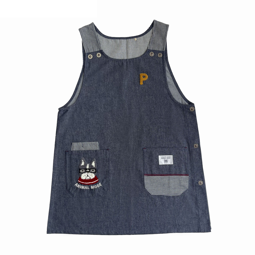 ☆ パウロ.デニムネイビー ☆ 脇釦あきエプロン エプロン おしゃれ 猫 ねこ ネコ 着脱が簡単 レディース シンプル 無地 ポケット 收藏