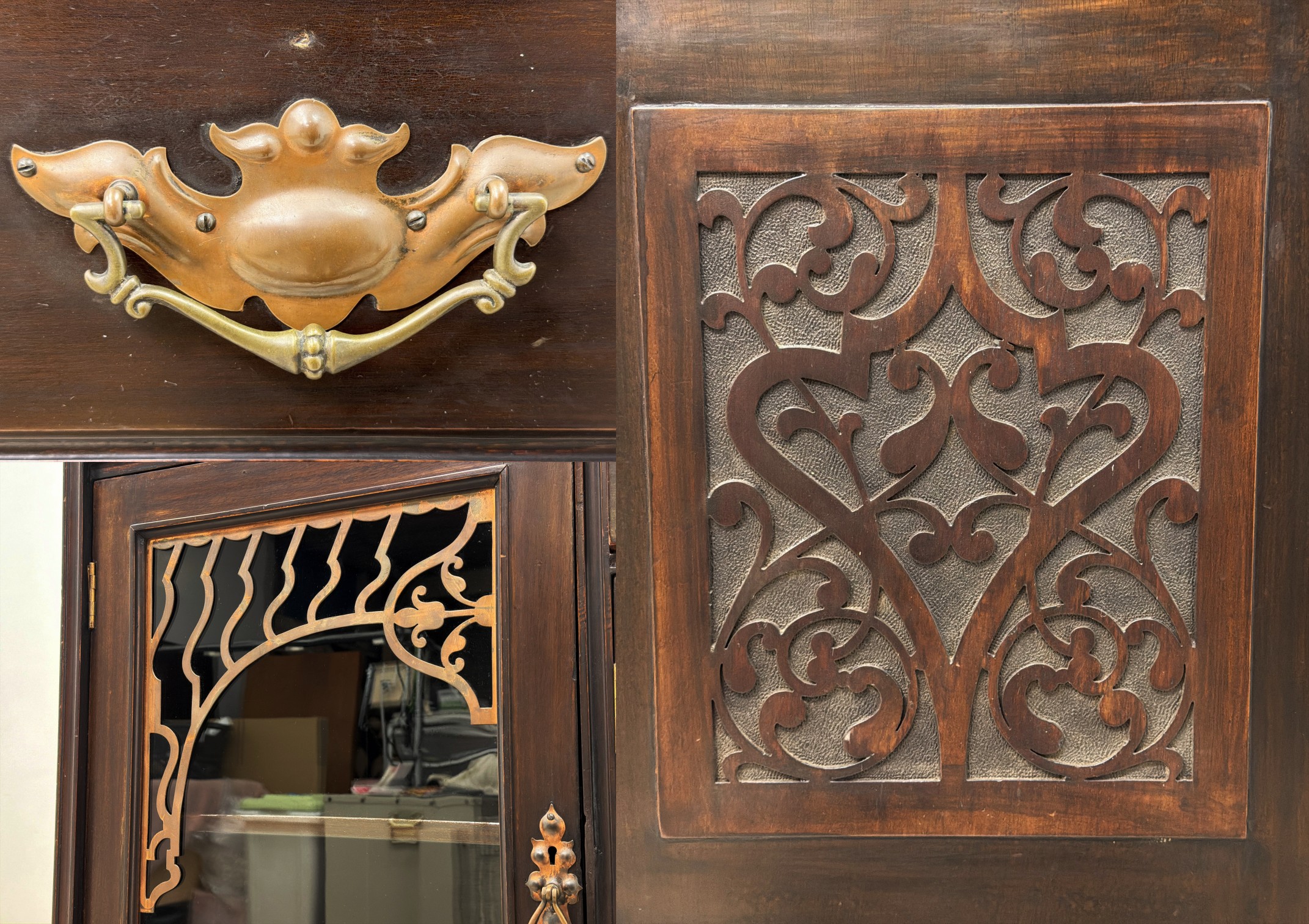156×192cm ヴィンテージ●大型ドレッサー サイドボード ブリティッシュ アンティーク ダークブラウン 飾り棚 鏡台 キャビネット 名古屋 收藏