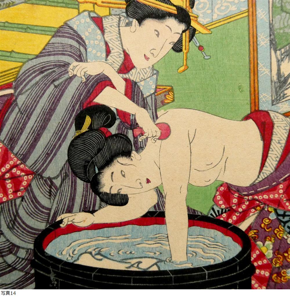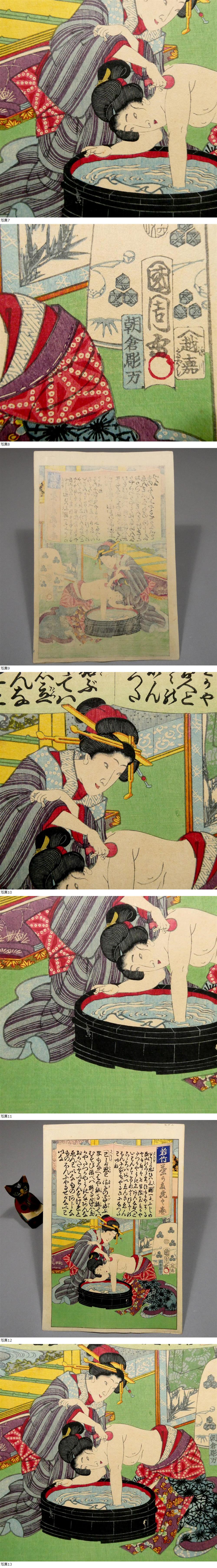 豊原国周◆遊女の行水◆江戸時代 木板浮世絵◆「葉うた虎之巻 若竹」◆わしが思いは繻子の帯結ぶまもなくはや解る…■桜 豊国 芳年 清親 3 收藏