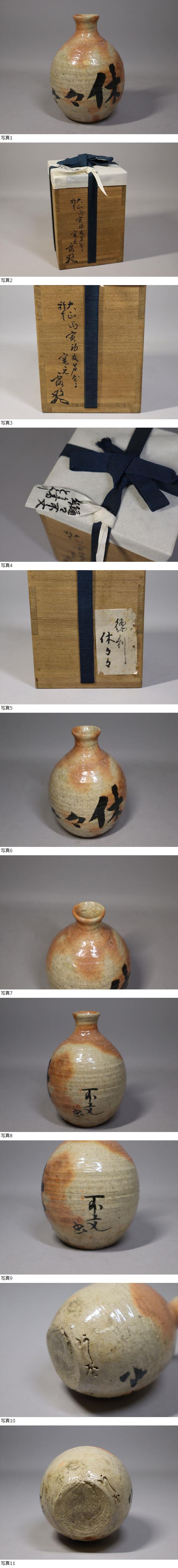 道具屋戸田露朝(一玄庵)財閥 樋口不文翁 休々々書徳利 大正15年芦屋です。傷はないです。