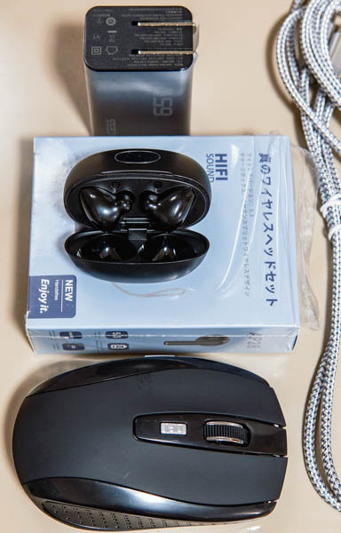 *コンパクトなAC電源アダプタと小型無線マウス