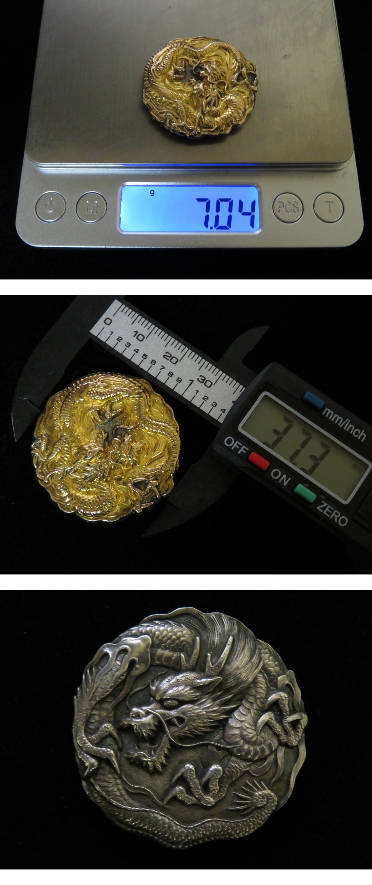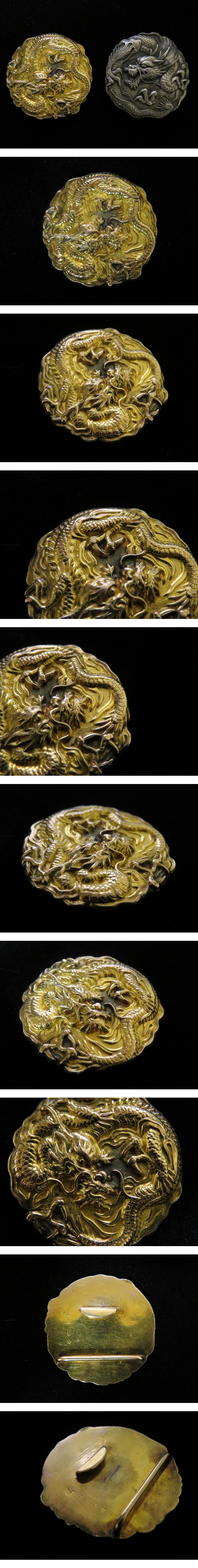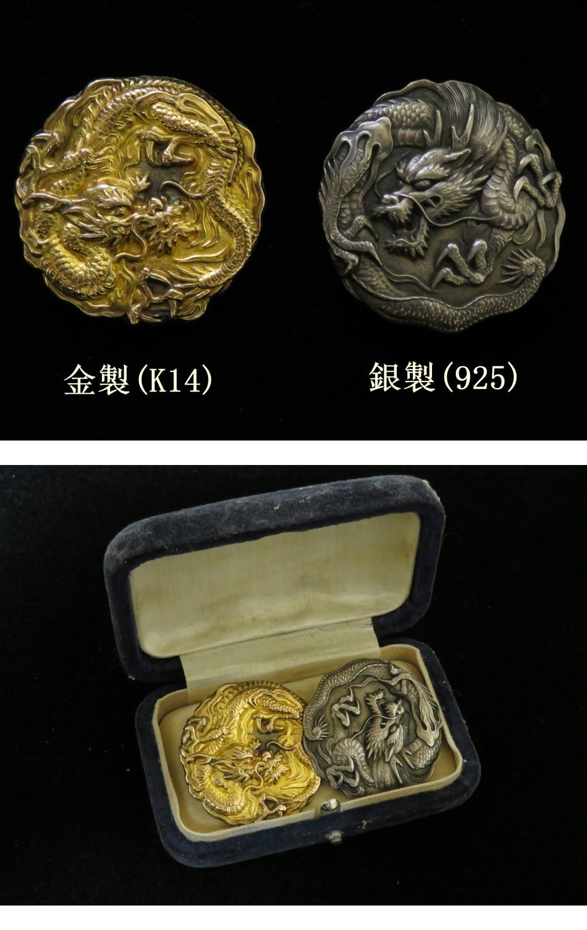 | ☆ 時代金工 金(k14) 銀(925) 龍紋 密細工 金具(バッチ) 一対 になります。二点共にX線にて14金、銀925と確認済みです。