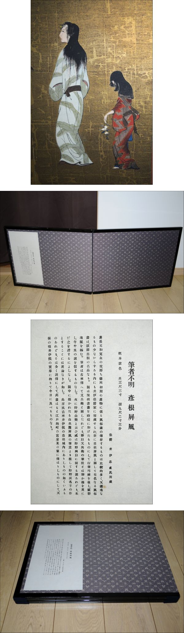 | 彦根屏風 横 約104.5cm×高さ 約40cm/検索用 骨董 美術品 ミニ屏風 複製 国宝 インテリア 置物【02104】 | ||