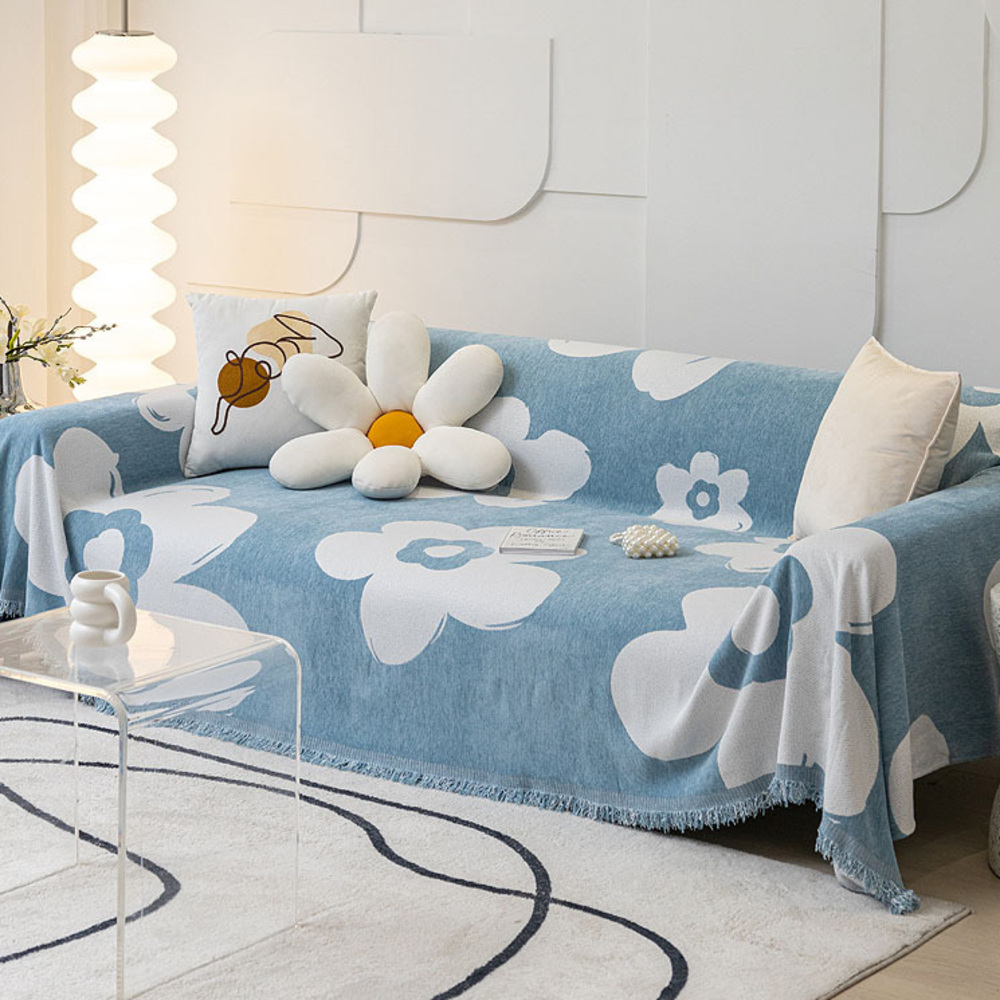 ☆ ライトブルー ☆ マルチカバー ソファーカバー 北欧風 お花 180x230cm gg6011 大判 マルチカバー 長方形 ソファカバー かけるだけ 收藏