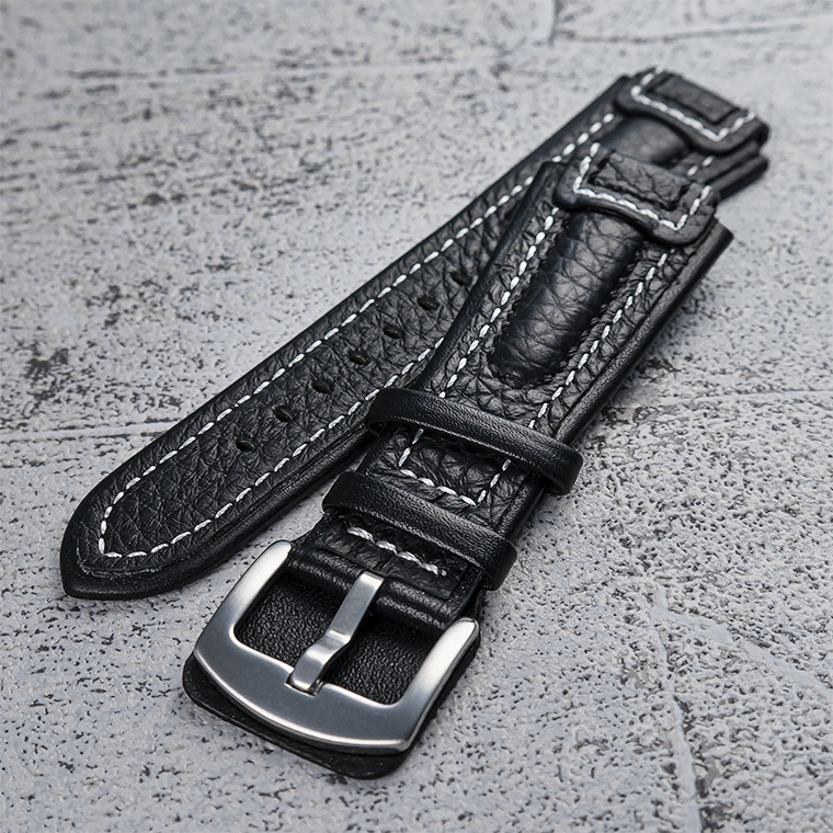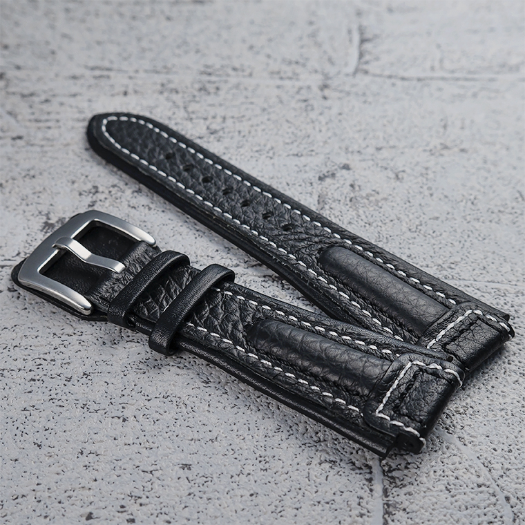 ■●【WANCHER/ワンチャー】本革製 牛革 パイロット 腕時計用 交換ベルト ブラック 黒 20mm 肉厚5mm 白ステッチ 新品アウトレット/K716* 收藏