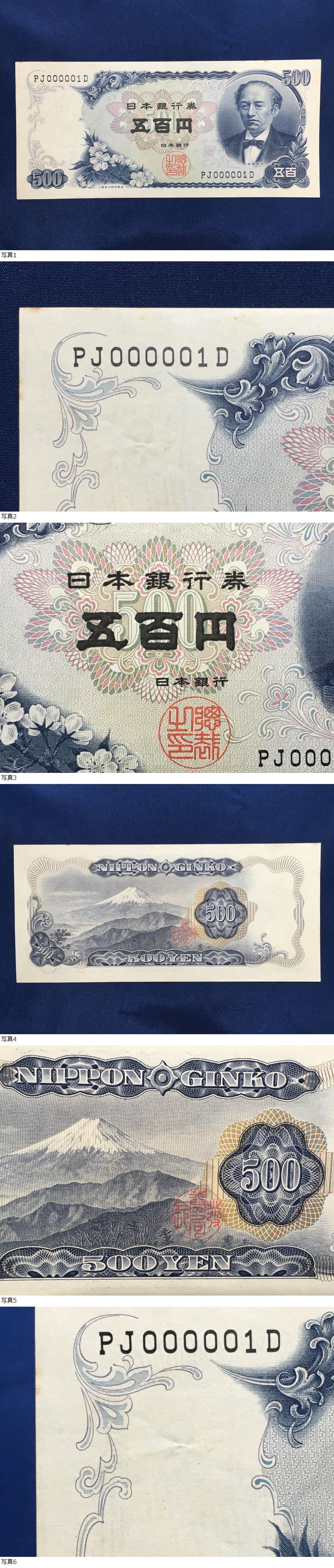 ◆岩倉具視 500円札 1枚 ピン札 PJ000001D 五百円札 未使用 11-78(紙28)=日本銀行券C号500円 岩倉新500円 11-1 收藏