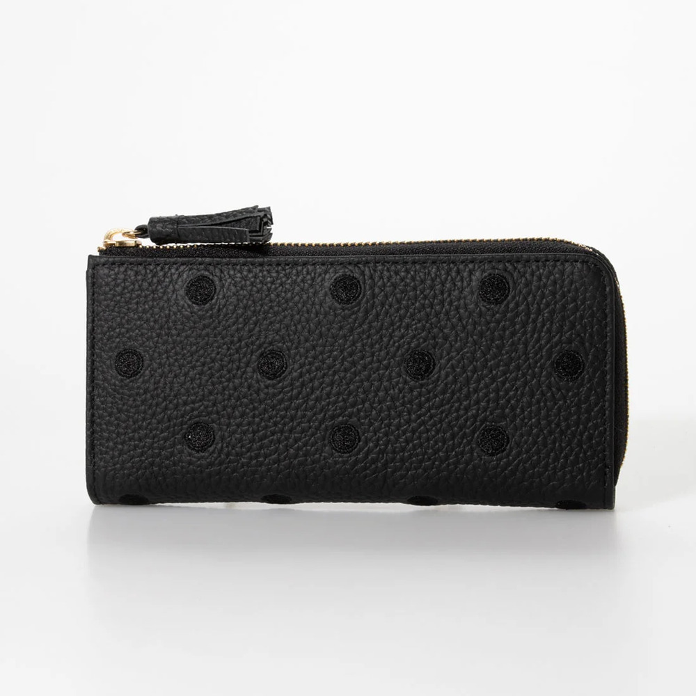☆ ブラック ☆ perche ペルケ 牛革ドット刺繍 L字パームフィット ペルケ 財布 perche 08-06-02978 長財布 L字ファスナー 長サイフ 薄型 收藏