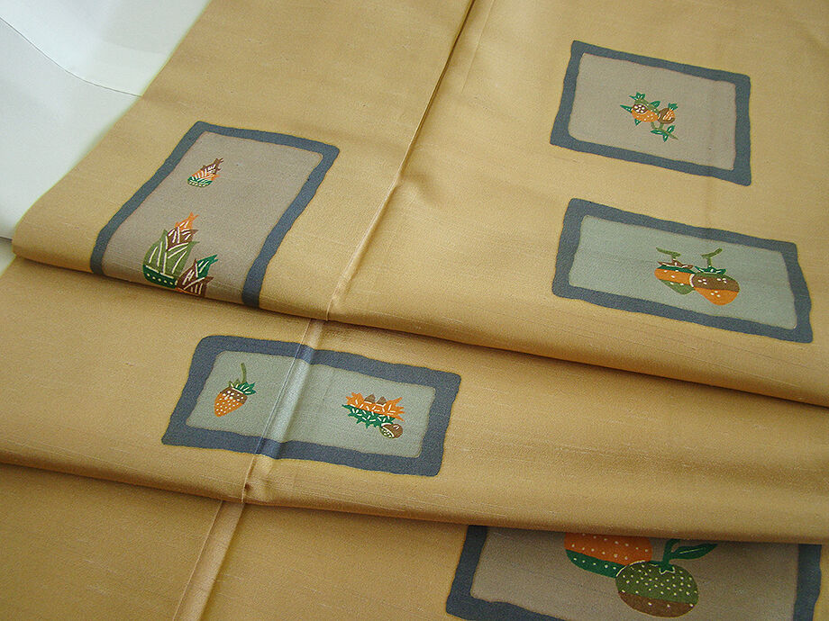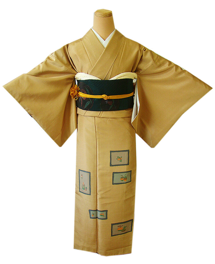 | 商品説明 | こちらのお品は「袷」でございますので、10月~5月にお召頂ければと思います。 とてもしなやかな滑らかな手触りの着心地良い高級ポリエステルの生地、 ブロンド色地にお野菜や果実柄の染柄、 八掛は黄土色、幅広い年代のお方にお召頂けます。 帯はしなやかで扱い易く結び易いしっかりとしたポリエステルの袋帯(六通柄) 渋い深緑色地に花草柄の織柄がシックな中に温もりある帯姿を謳っております。 帯揚げは絞り、淡い黄色地に絞り入り、 帯〆は平組、濃い金茶色の組紐となっております。 |