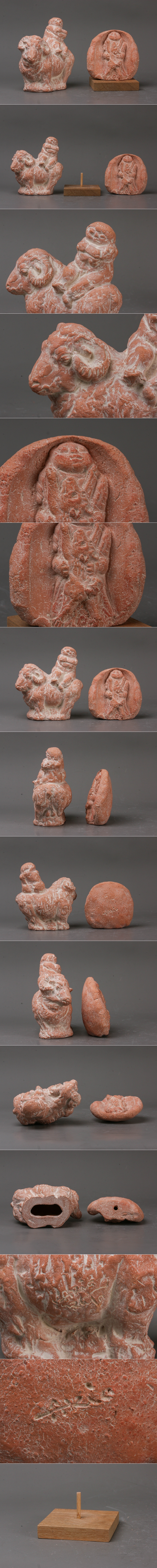 【SAG】加藤昭男 KATO AKIO テラコッタ 置物 オブジェ 二点 飾台 本物保証 收藏