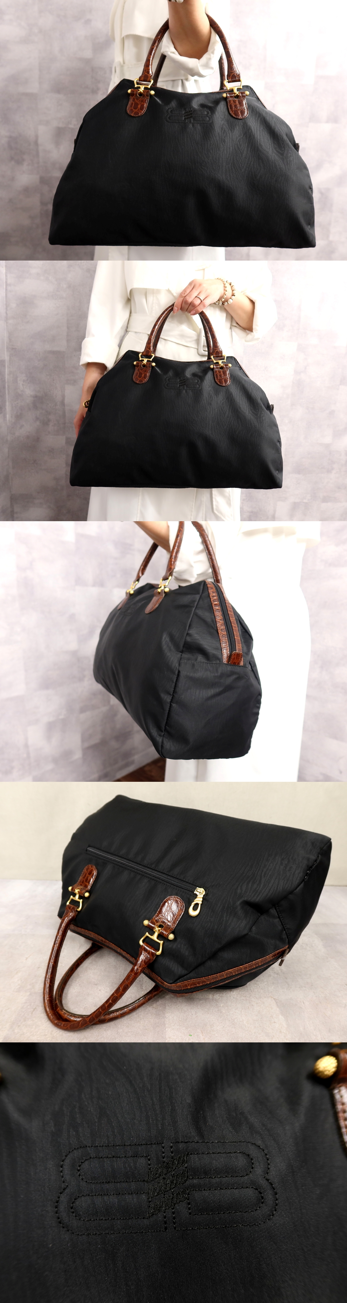 ●超美品●BALENCIAGA バレンシアガ●BBロゴ●ナイロン クロコダイル 型押し レザー 本革●ボストン バッグ●黒 ブラウン●G金具●Js67199 收藏