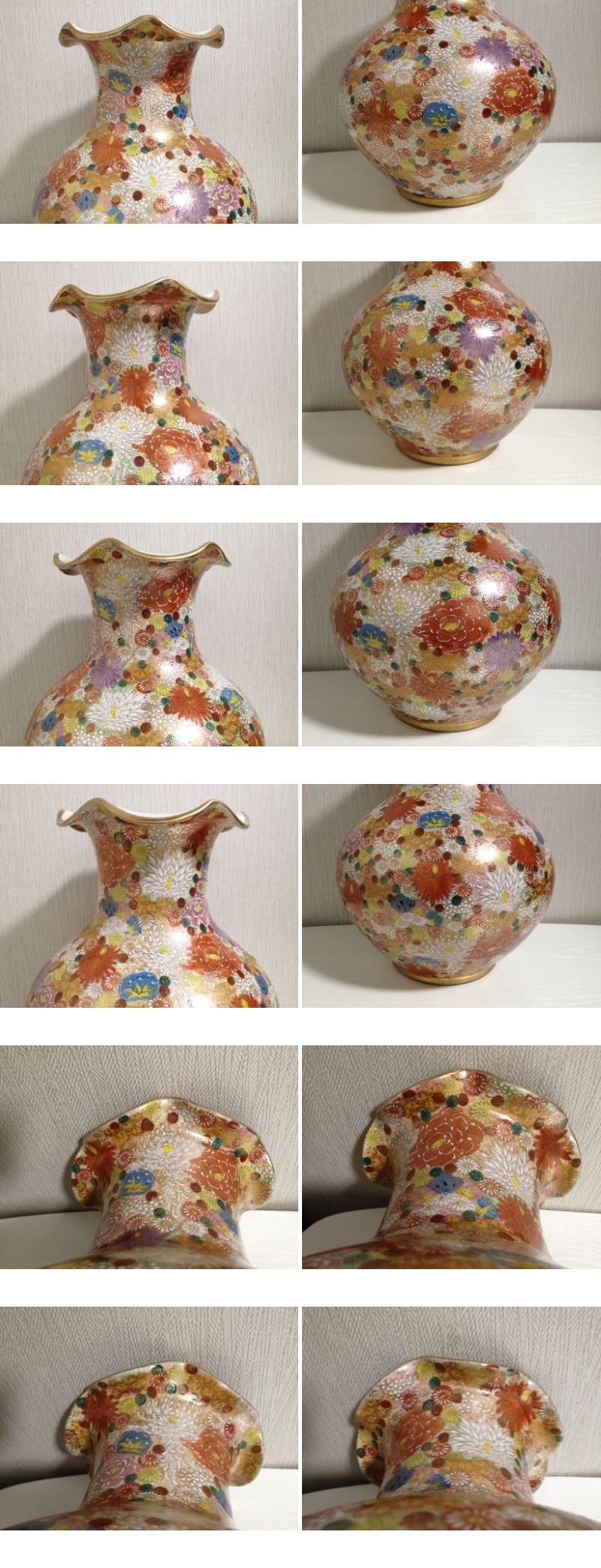 薩摩焼 田薩摩印 丸十字 白薩摩 白もん 花瓶 花器 花入 花生 壺 色絵金彩 花詰 高さ33cm 古美術品 菊 牡丹 朝顔 陶磁器 置物 オブジェ 花詰 收藏