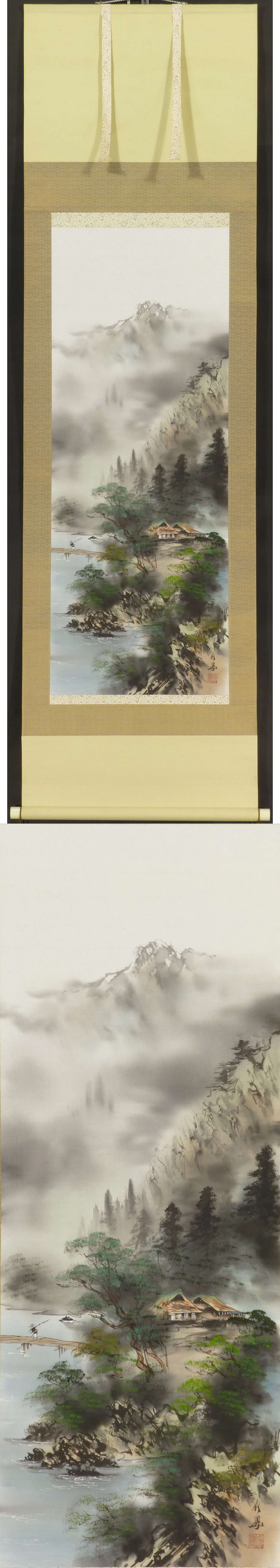 | 【模写】 掛軸 竹翠 筆 「山水図」 絹本 | |