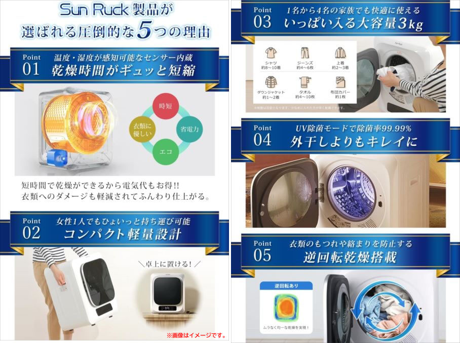 D5694YO ■0418【未使用品】ドラム式 衣類乾燥機 小型 3kg SunRuck SR-ASMN206-W 乾きくん 時短 エコ 省エネ家電 收藏